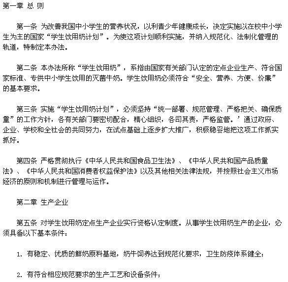 我國"學(xué)生飲用奶計(jì)劃"暫行管理方法