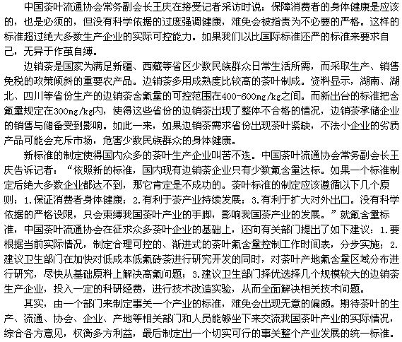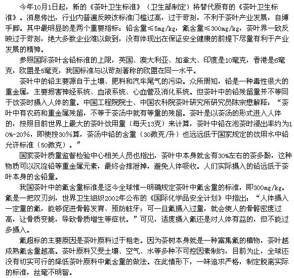 門檻過高 自縛手腳 新《茶葉衛(wèi)生標準》受爭議