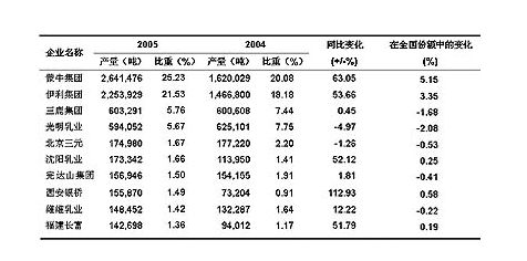 2005年中國液態(tài)奶產(chǎn)量排行榜